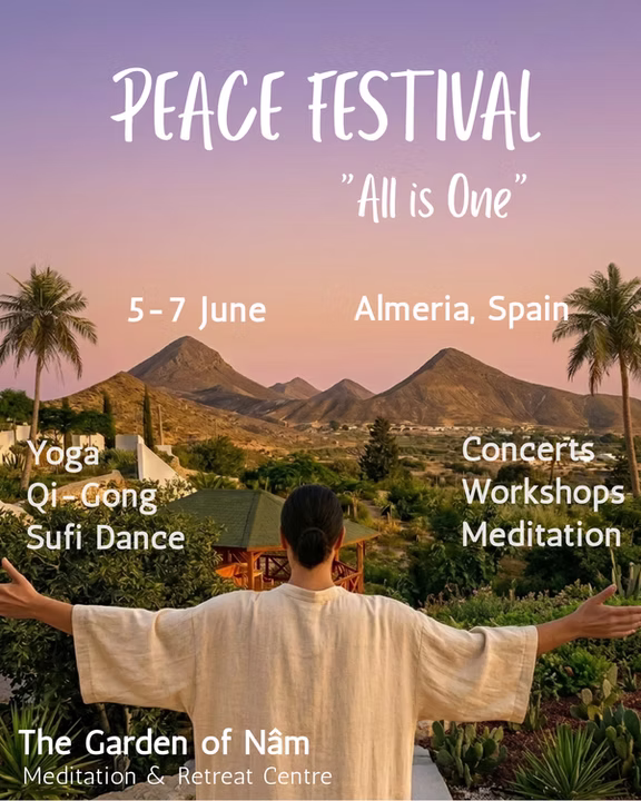 Este festival de tres días es una invitación a experimentar la unidad a través de la meditación, los cantos místicos, la poesía sagrada de los sabios sufíes, el Samaa, los torbellinos, el yoga, las danzas de la paz universal y los conciertos de artistas que comparten con nosotros la música mística del mundo, reuniendo diferentes tradiciones bajo un mismo paraguas: Vivir como Uno.